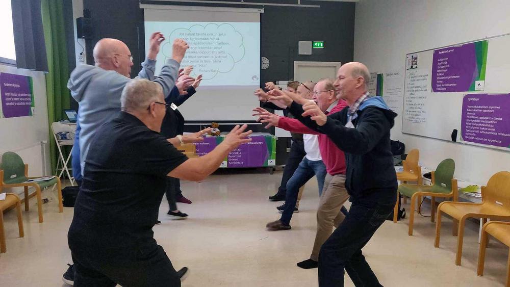 Lioneita testaamassa Lions Quest -koulutusta