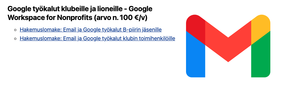 Tiesitkö, että B-piirin klubit voivat saada käyttöönsä maksuttomat, jopa noin 100 €/jäsen/vuosi arvoiset Googlen työkalut – täysin ilman kustannuksia?