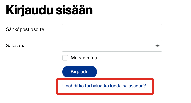 Jos sinulla jo on salasana, niin käytä sitä. Muutoin klikkaa "Unohditko tai haluatko luoda salasanan"